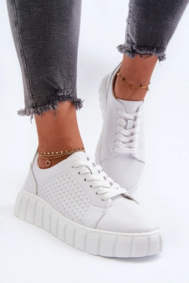 Zazoo 1833 Sneakersy Damskie Skórzane Na Masywnej Podeszwie Białe