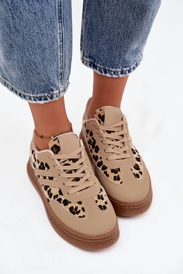 Sneakersy Damskie Na Platformie Panterka Beżowe Denissa