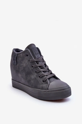 Trampki Skórzane Damskie Na Koturnie Big Star MM274005 Szare