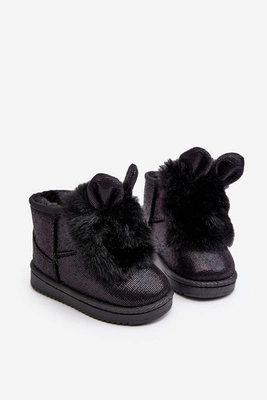 Dziecięce Śniegowce Ocieplane Futerkiem Z Uszkami Czarne Betty