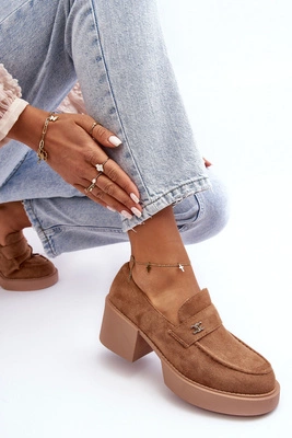Zamszowe Półbuty Na Obcasie Damskie Ciemnobeżowe Afnira