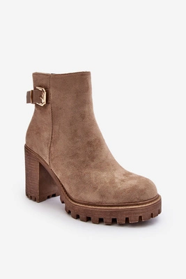 Zamszowe Damskie Botki Na Słupku Z Ozdobą Beżowe Menoria