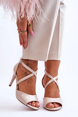 Damskie Sandały Na Obcasie Z Cyrkoniami Beżowe Idealistic