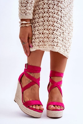 Zamszowe Sandałki Espadryle Na Koturnie Fuksja Cammer