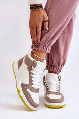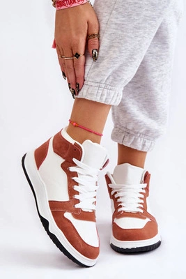 +3Wysokie Damskie Buty Sportowe Trampki Biało-Camelowe Rumour