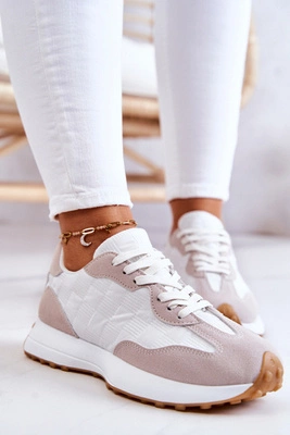 +1Klasyczne Sportowe Buty Wiązane Biało-Beżowe Patrice