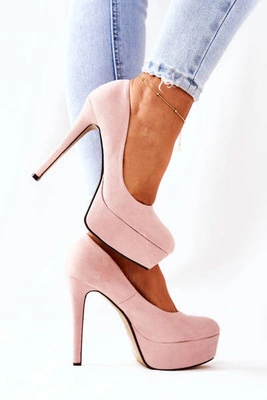 Klasyczne Zamszowe Szpilki Na Platformie Beżowe Silly