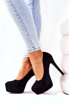 Klasyczne Zamszowe Szpilki Na Platformie Czarne Silly
