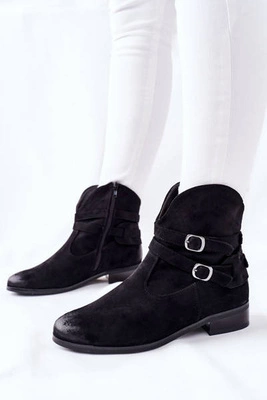 Zamszowe Damskie Botki Ocieplane Czarne Hillbrook