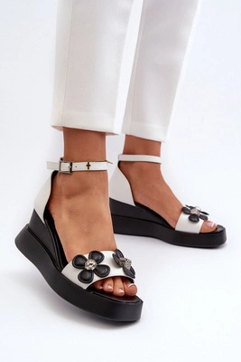 +1Sandały Damskie Na Platformie I Koturnie Z Kwiatami Białe Foviana