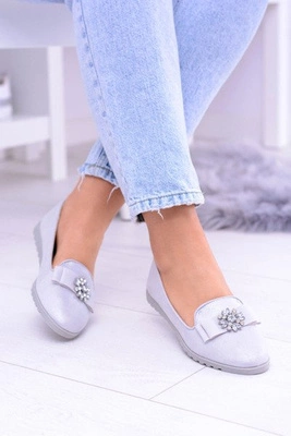 Szare Damskie Baleriny Lordsy z Cyrkoniami Hortense