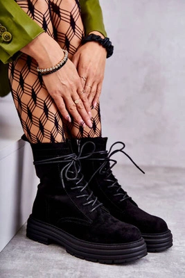 Damskie Zamszowe Botki Wiązane Czarne Afra