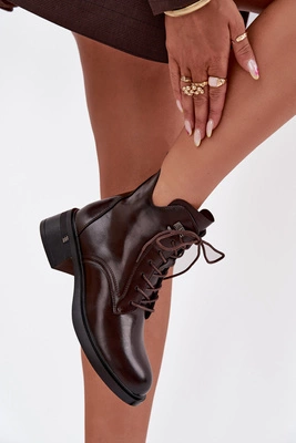 Ażurowe Botki Na Płaskim Obcasie S.Barski HY51-063 Brązowe