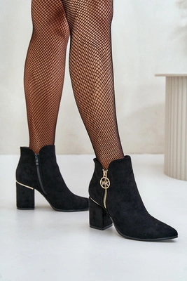 Ocieplane Botki Damskie Na Słupku Eko Zamszowe Czarne Saivia