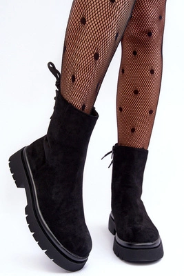 Masywne Zamszowe Botki Damskie Na Płaskim Obcasie Czarne Lunai