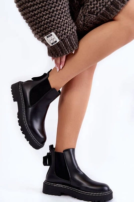 Skórzane Damskie Botki Na Platformie Czarne Bente