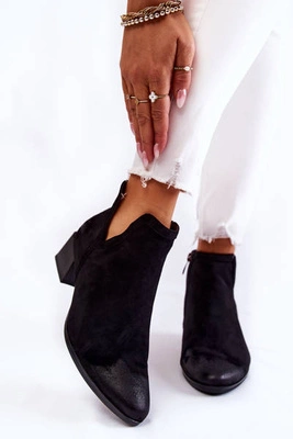 Zamszowe Botki Na Obcasie Z Suwakiem Czarne Sevione
