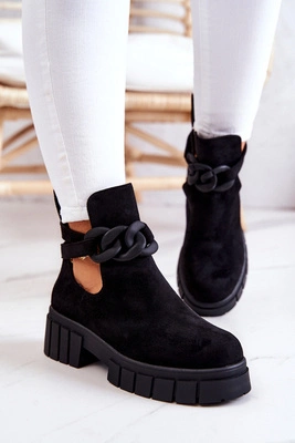 Zamszowe Botki Z Wycięciem Czarne Kirsten