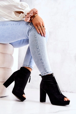 Botki Na Słupku Odkryte Palce Czarne Adore