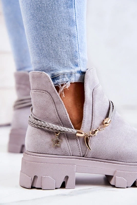 Zamszowe Botki Workery Z Paskami Szare Moriah