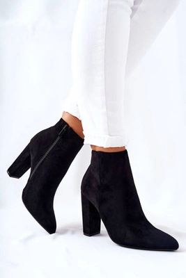 Zamszowe Botki Na Obcasie Czarne Elisea