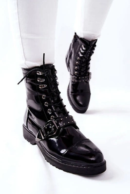 Damskie Botki Workery Lakierowane Khaki Maxine