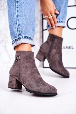 Damskie Klasyczne Botki Na Słupku Zamszowe Czarne Ring