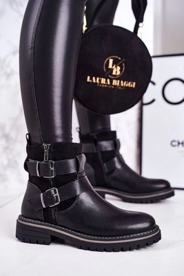 Botki Damskie Zamszowe Ocieplane Laura Messi Czarne 1879