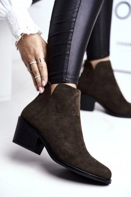 Damskie Botki Na Słupku Wycięte Khaki Mini Meliori