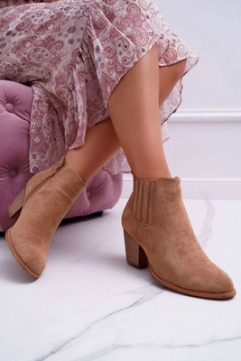 Botki Damskie Na Obcasie Zamszowe Camel Gomen