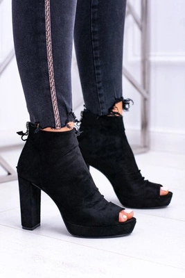 Damskie Czarne Botki Na Słupku Zamsz Ferimate