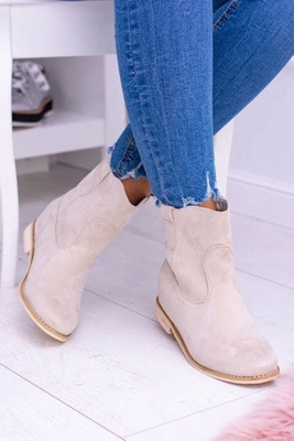 Lu Boo Zamszowe Beżowe Botki Z Suwakami Inez