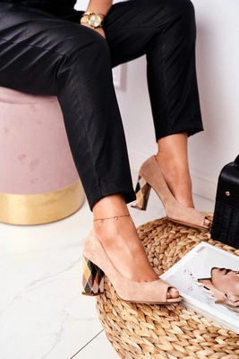 Czółenka Damskie Na Słupku Zamszowe Beżowe Harye