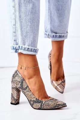 Skórzane Czółenka Z Wężowym Wzorem Lewski Shoes 2453 Złote