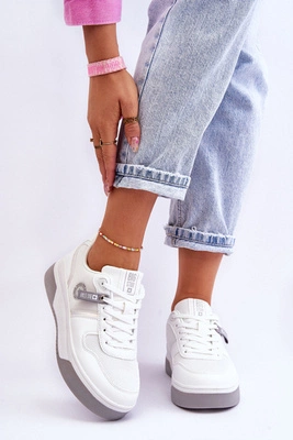+2Damskie Materiałowe Buty Sportowe Memory Foam System Big Star LL274A064 Białe