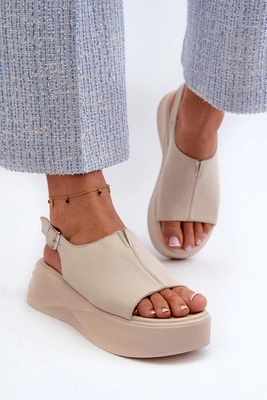Skórzane Sandały Damskie Na Platformie D&A SJ2301-2 Beżowe
