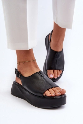 Zazoo 1786 Skórzane Sandały Damskie Na Platformie Z Ozdobą Czarne