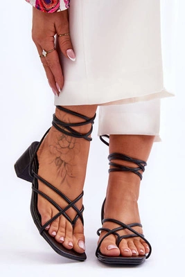 Damskie Wiązane Sandałki Na Szpilce Czarne Meya