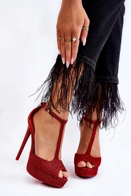 Błyszczące Sandałki Na Wysokim Obcasie Czerwone Marisha