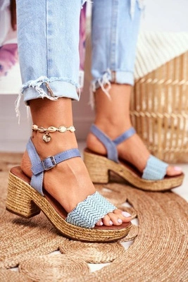 +1Sandały Na Plecionej Platformie Niebieskie Fobi