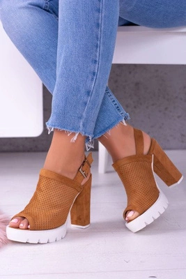 Lu Boo Brązowe Zamszowe Sandały na Słupku Emare