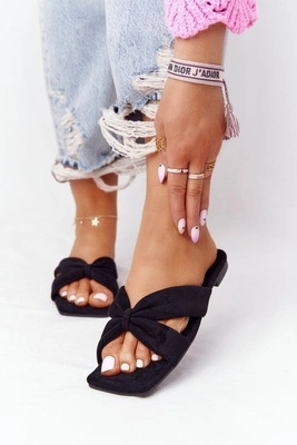 Damskie Welurowe Klapki Czarne Vanilla Sky