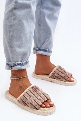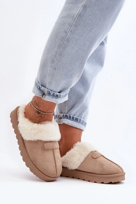 Damskie Ocieplane Papcie Wsuwane Z Futerkiem Beżowe Leriss