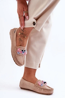 Modne Zamszowe Mokasyny Z Ozdobami Beżowe Delima