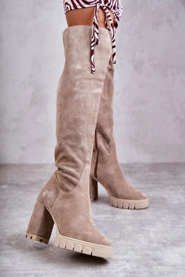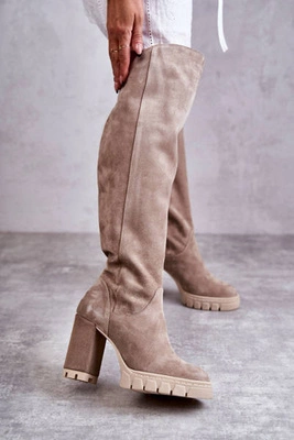 Zamszowe Kozaki Na Szpilce Beżowe Carite
