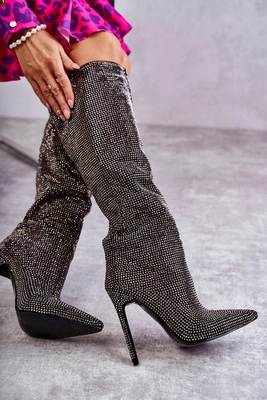 Zamszowe Kozaki Na Szpilce Czarne Carite