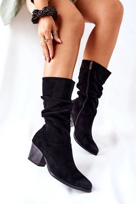 Kozaki Damskie Na Obcasie Zamszowe Czarne Sillogue