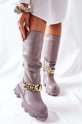 Wysokie Brązowe Kozaki z Łańcuchem Teardown