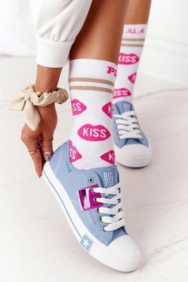 +2Damskie Wysokie Trampki Big Star HH274449 Niebieskie