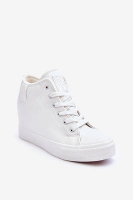 +2Trampki Skórzane Damskie Na Koturnie Big Star MM274002 Białe